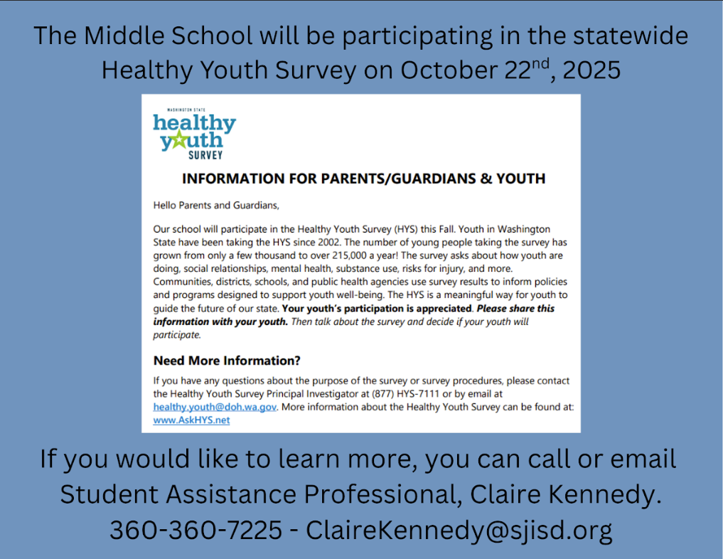 If you experience difficulty with the accessibility of any web pages or documents on this website, please request this information in an alternate format. You may email the information requests directly to: dianafearn@sjisd.org or call (360) 378-4133.